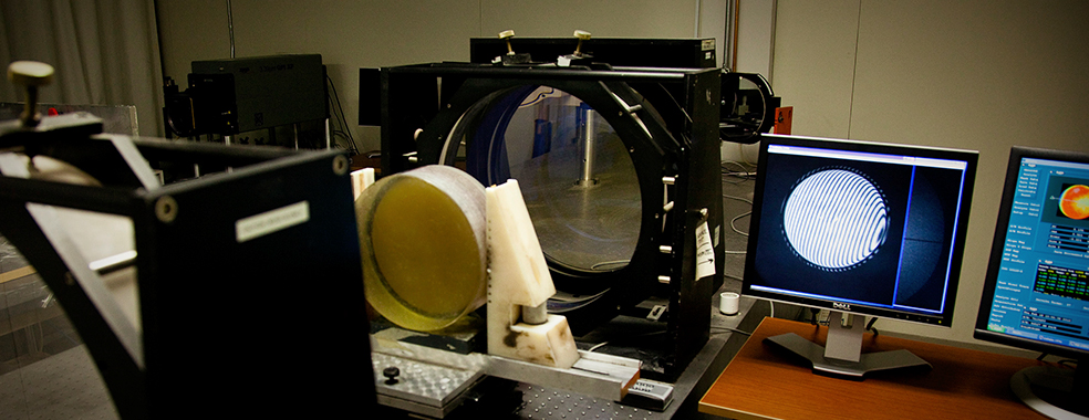 Our testing capabilities and equipment include visible and IR interferometers to measure surface form and/or transmitted wavefront; a white light interferometer to measure surface roughness (non-contact); visible and IR spectrophotometers to measure optical transmission and reflectivity; a Dektac surface profiler to measure coating thickness; various environmental test chambers (humidity, temperature, and salt spray/fog); a Form Talysurf profilometer; holographic measuring capability for diamond turned aspheric surfaces; and a coordinate measurement machine (CMM).